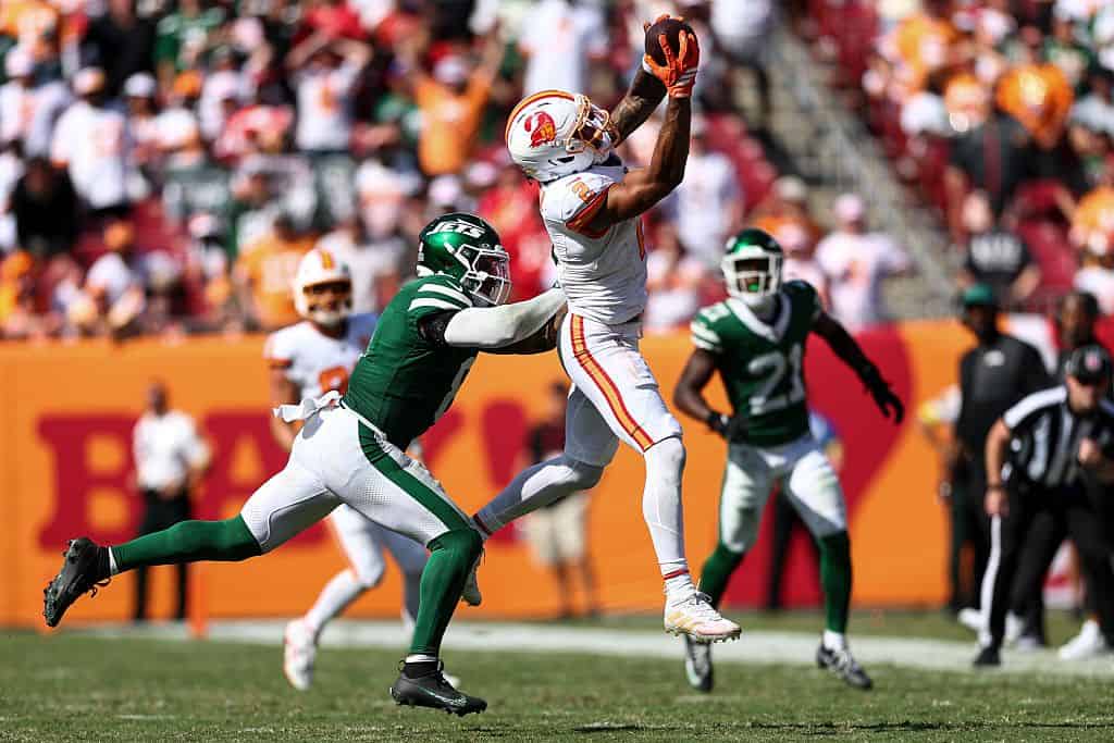 On 378 routes with Evans off the field, Egbuka was targeted on 26.2% of his routes and saw 28% of Tampa’s overall targets.